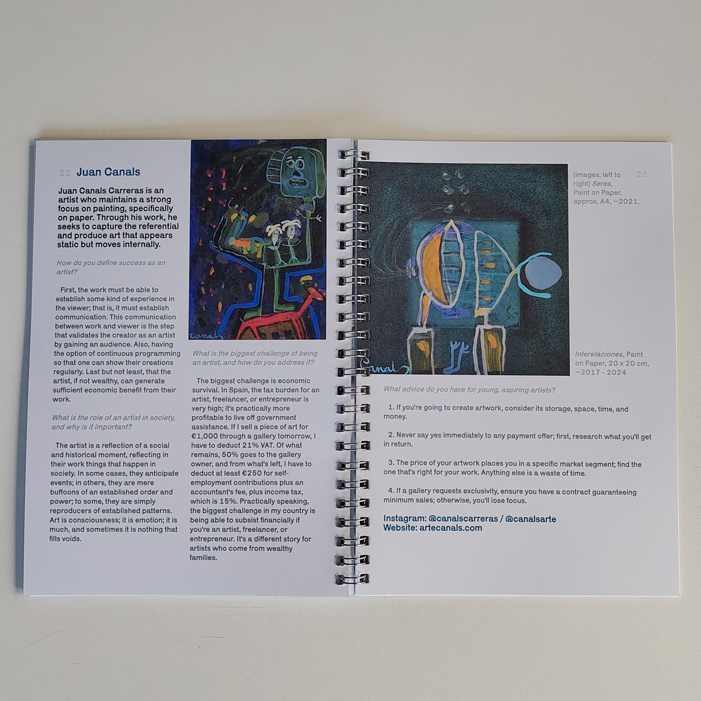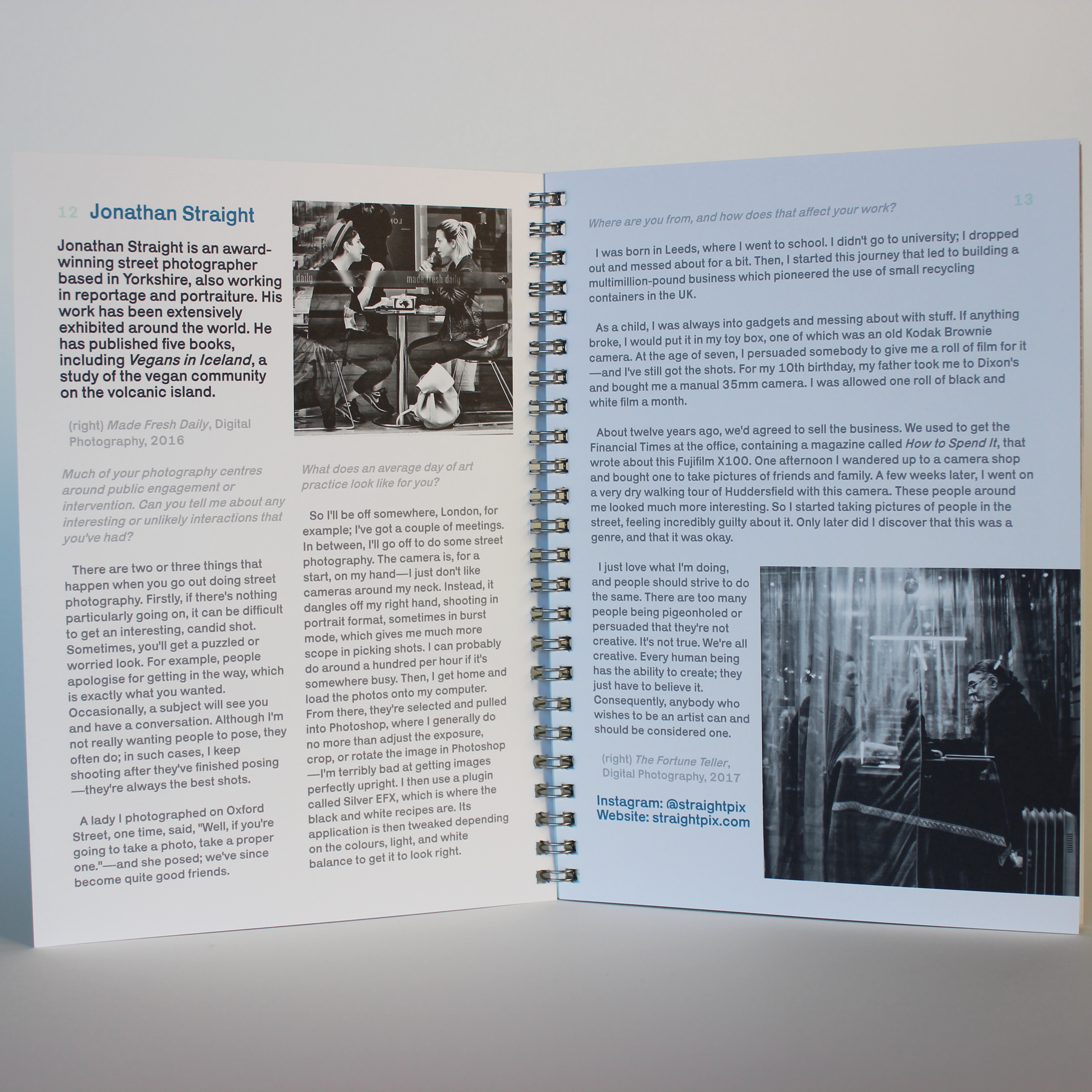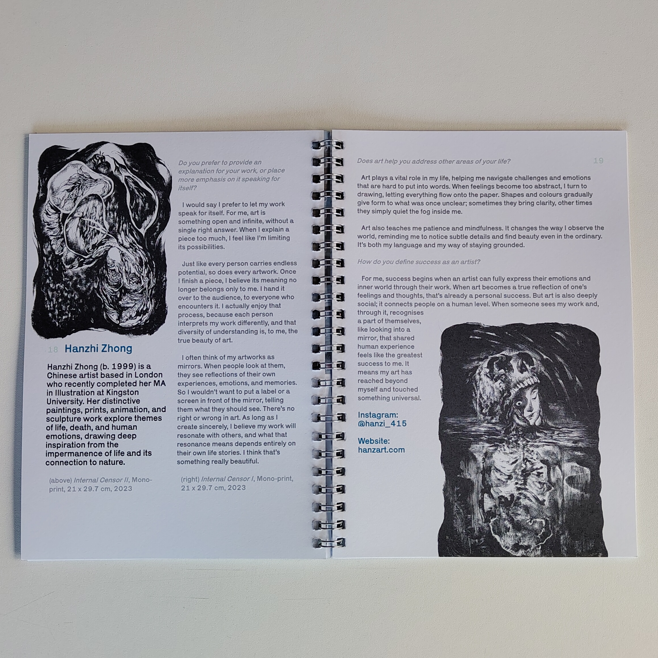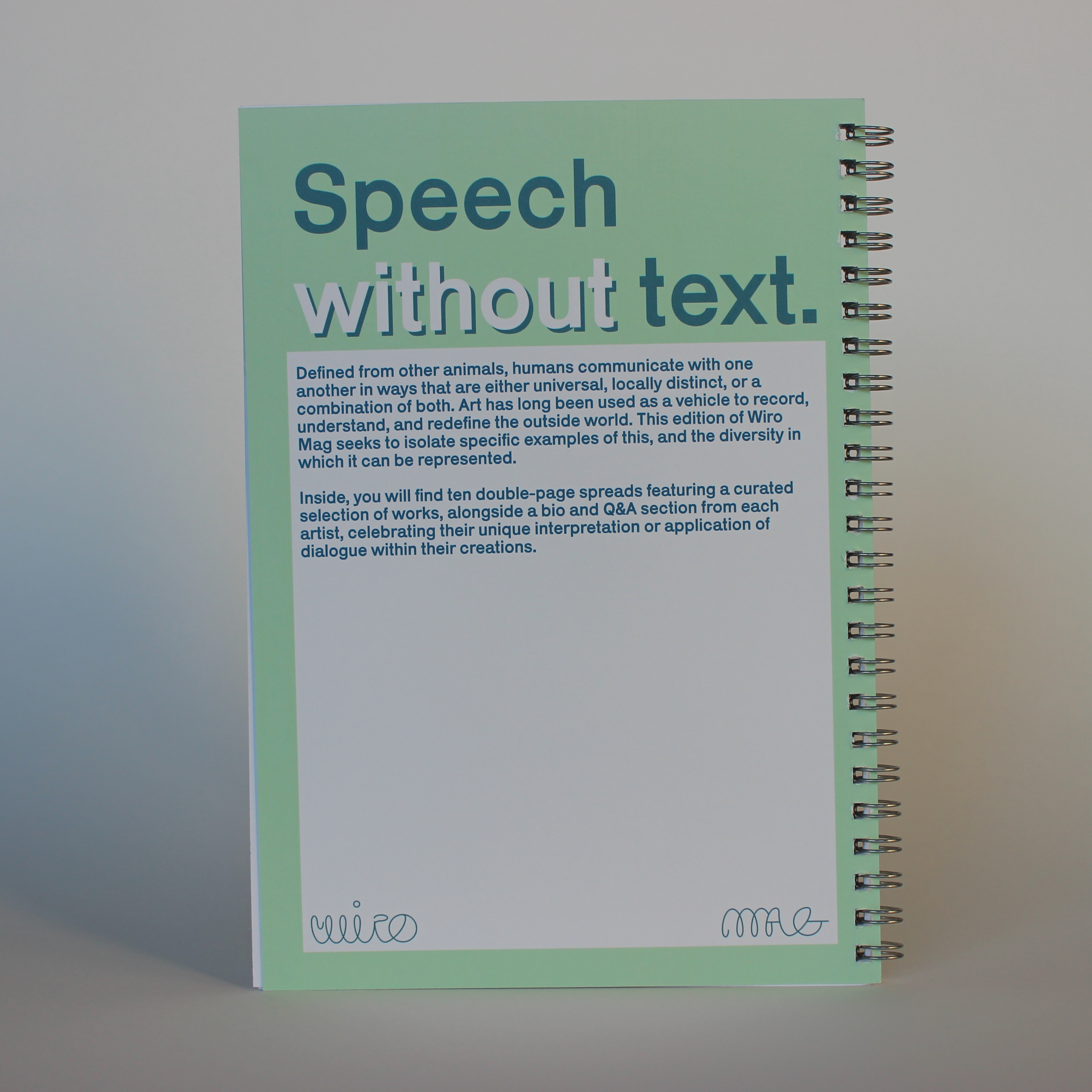 Inside, you will find ten double-page spreads featuring a curated selection of works, alongside a bio and Q&A section from each artist, celebrating their unique interpretation or application of dialogue within their creations.